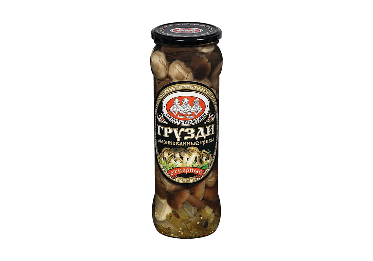 Состав:грузди, вода, соль, сахар, уксусная кислота, зелень укропа, семена горчицы, лук, морковь, душистый перец, чеснок и др. специи и пряности