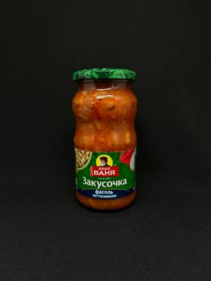 Состав:фасоль продовольственная (белая), лук свежий, томатная паста, сахар, масло подсолнечное, соль, регулятор кислотности: уксусная кислота.