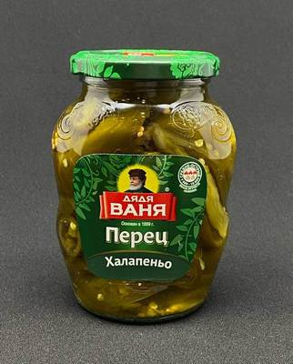 Состав:перец халапеньо, очищенная вода, сахар, соль, регулятор кислотности: уксусная кислота, чеснок сушёный, семена горчицы.