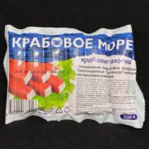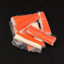 Состав:Рыбный фарш «Сурими» (фарш из летучей рыбы,сахар,влагоудерживающий агент полифосфаты),вода,яичный белок,крахмал картофельный,масло растительное.