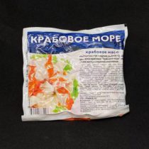 Состав:Рыбный фарш «Сурими» (фарш из летучей рыбы,сахар,влагоудерживающий агент полифосфаты),вода,яичный белок,крахмал картофельный,масло растительное.