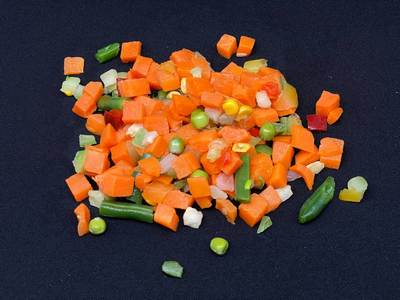 Овощная замороженная Мексиканская смесь. Состав:перец сладкий, фасоль стручковая, морковь, кукуруза зерно, зеленый горох, лук репчатый.