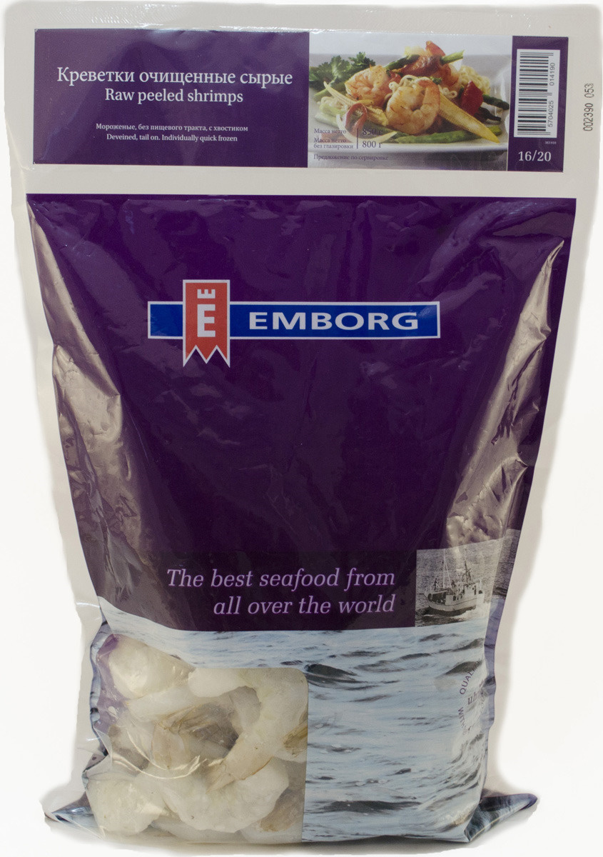 Креветки тигров. EMBORG 16/20 с/м б/г в панцире 850г (10)