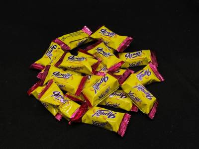 Состав: ядро арахиса жареное, патока крахмальная, сахар, заменитель масла какао нетемперируемый лауринового типа, масло пальмовое , сыворотка сухая молочная, какао-порошок, эмульгатор:соевый лецитин, молоко цельное сгущеное с сахаром.