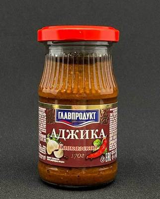 Состав: вода питьевая, перец чили, соль поваренная пищевая, паприка, смесь пряностей «хмели-сунели», кориандр, чеснок, загуститель — крахмал кукурузный, зелень петрушки, перец красный молотый, регулятор кислотности — кислота уксусная, консерванты: бензоат натрия, сорбат калия