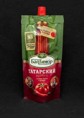 Кетчуп Балтимор Татарский дой-пак, 260г (РКТ015) 1 шт. Густой острый кетчуп с кусочками овощей и букетом восточных специй и трав: кориандром, укропом и перцем. Такая смесь специй и томатов особенно хорошо сочетается с блюдами из баранины. Острые нотки кетчупа не перебивают вкус блюда, но дополняют его вкус. Без консервантов, ароматизаторов, ГМО и красителей.