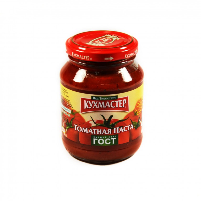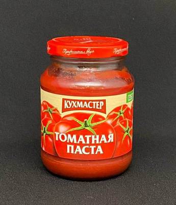 Томатная паста. Содержание сухих веществ 23-25%. Масса нетто 0,270 кг. Широко применяется для приготовления блюд.