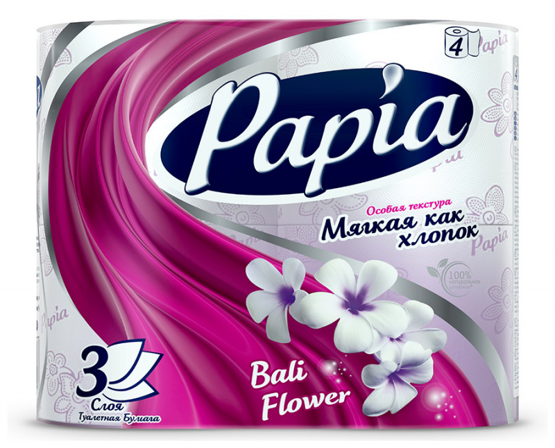 Туалетная бумага PAPIA 3 сл 4 рул, уп